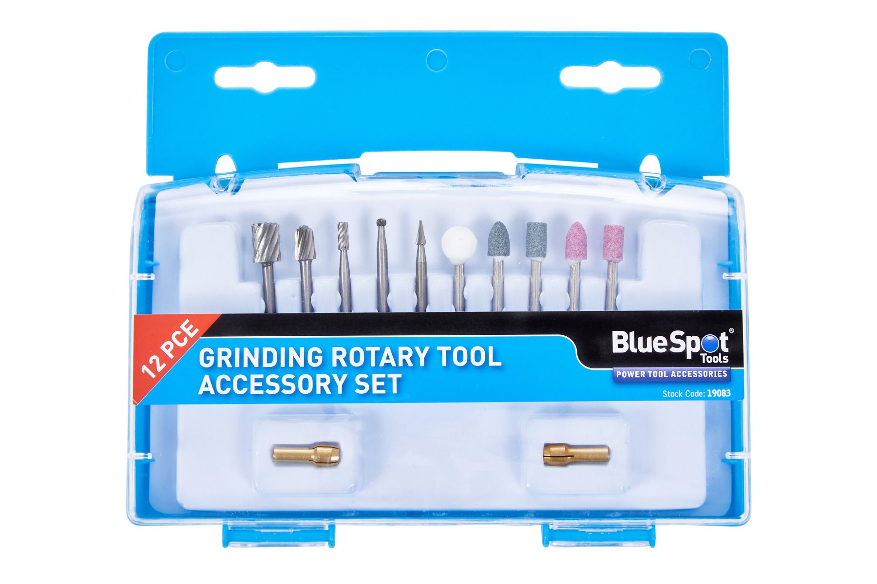 The Blue Spot Tools 12pc grinding tool set is ideal for grinding precision craft and hobby work. Ideal for use with most rotary tools. Includes 12 assorted accessories including HSS cutters, mounted stones and brass collets.